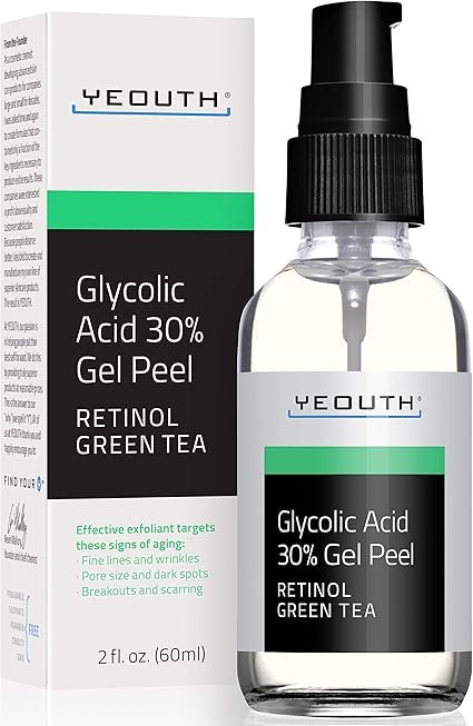 YEOUTH Peeling de Ácido Glicólico 30% Cuidado Facial Profesional con Retinol y Té Verde, Exfoliante Facial Gel Glycolic, Químico Facial en Casa 60ml