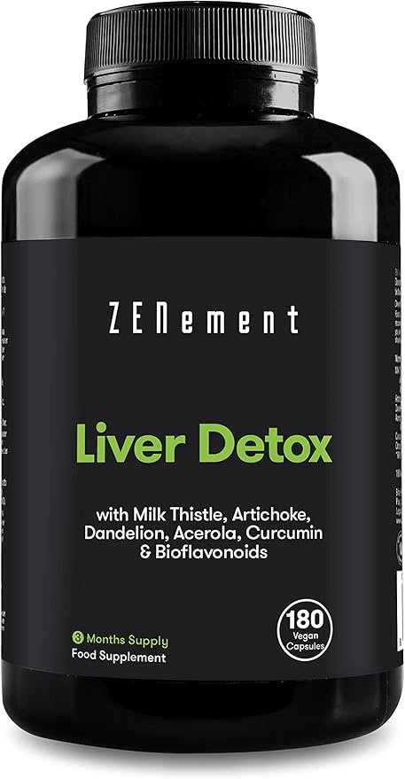 Detox Hígado con Cardo Mariano, Alcachofa, Diente de León, Acerola, Cúrcuma y Bioflavonoides, 180 Cápsulas | Depurativo, antioxidante, mejora la digestión | Natural, Vegano, No-GMO | Zenement
