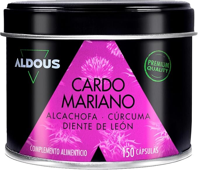 - 💊 150 CARDO MARIANO CAPSULAS TRIPLE ACCIÓN – El cardo mariano natural de Aldous son unas pastillas para higado que funcionan como detox depurativo. Nuestra formulación, compuesta por Cardo Mariano con 80 % de Silimarina, Extracto de Alcachofa, Cúrcuma, Diente de León y Desmodium, mejora la digestión, favorece la eliminación de gases, la retención liquidos, de toxinas y la desaparición del dolor estomacal.